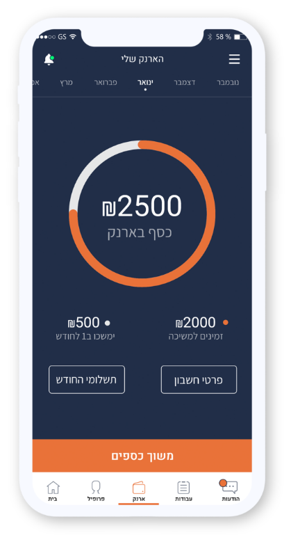 יצרנו עבורך ארנק דיגיטלי ייחודי המאפשר מעקב מלא אחרי העבודות שלך. ניתן לראות מהם התאריכים והשעות של המשמרות בהן עבדת, מה היה השכר השעתי, ועבור אילו חברות עבדת. ניתן למשוך עד 70% מסך השכר תוך יום עסקים אחד בלבד, כשהשאר זמין למשיכה ב1 לחודש.