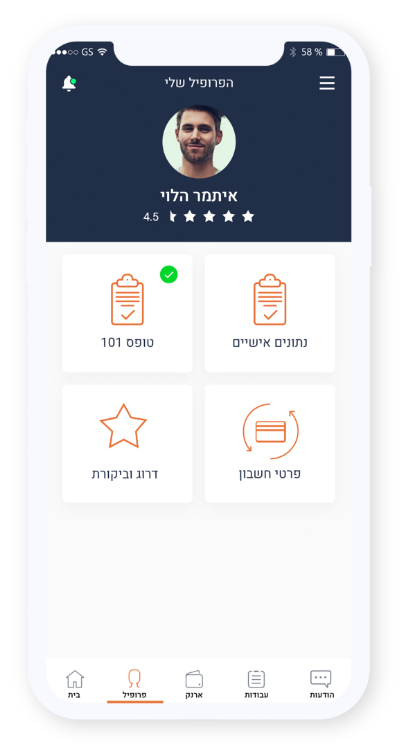 הפלטפורמה של GTWORK מאפשרת לך לבנות פרופיל אישי להגשת מועמדות למשרות שמעניינות אותך - בלחיצת כפתור. בנוסף, מעסיקים יוכלו לדרג אותך ולבקש דווקא אותך למשרות עתידיות.
