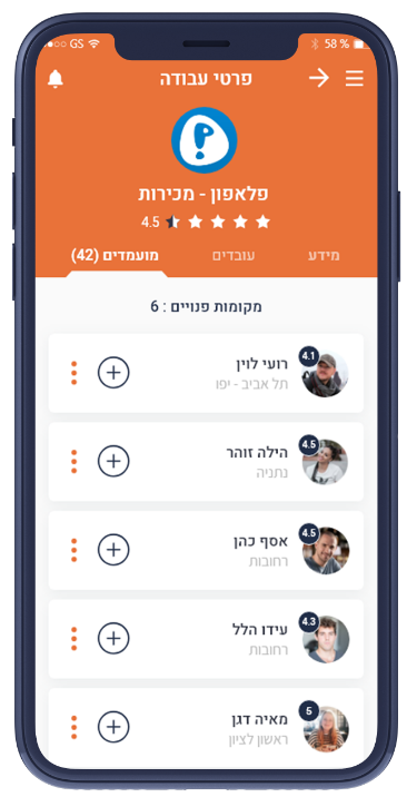 הפלטפורמה מאפשרת למעסיקים לפרסם הצעת עבודה בקלות ולמצוא את מספר העובדים הדרושים בצורה היעילה ביותר. פתיחת משרה חדשה כוללת תיאור המשרה, מספר עובדים, מיקום, שעות, שכר שעתי, צורת לבוש ועוד. הצעת העבודה תתפרסם אוטומטית ותופיע בחיפוש של אלפי מועמדים בכל הארץ.